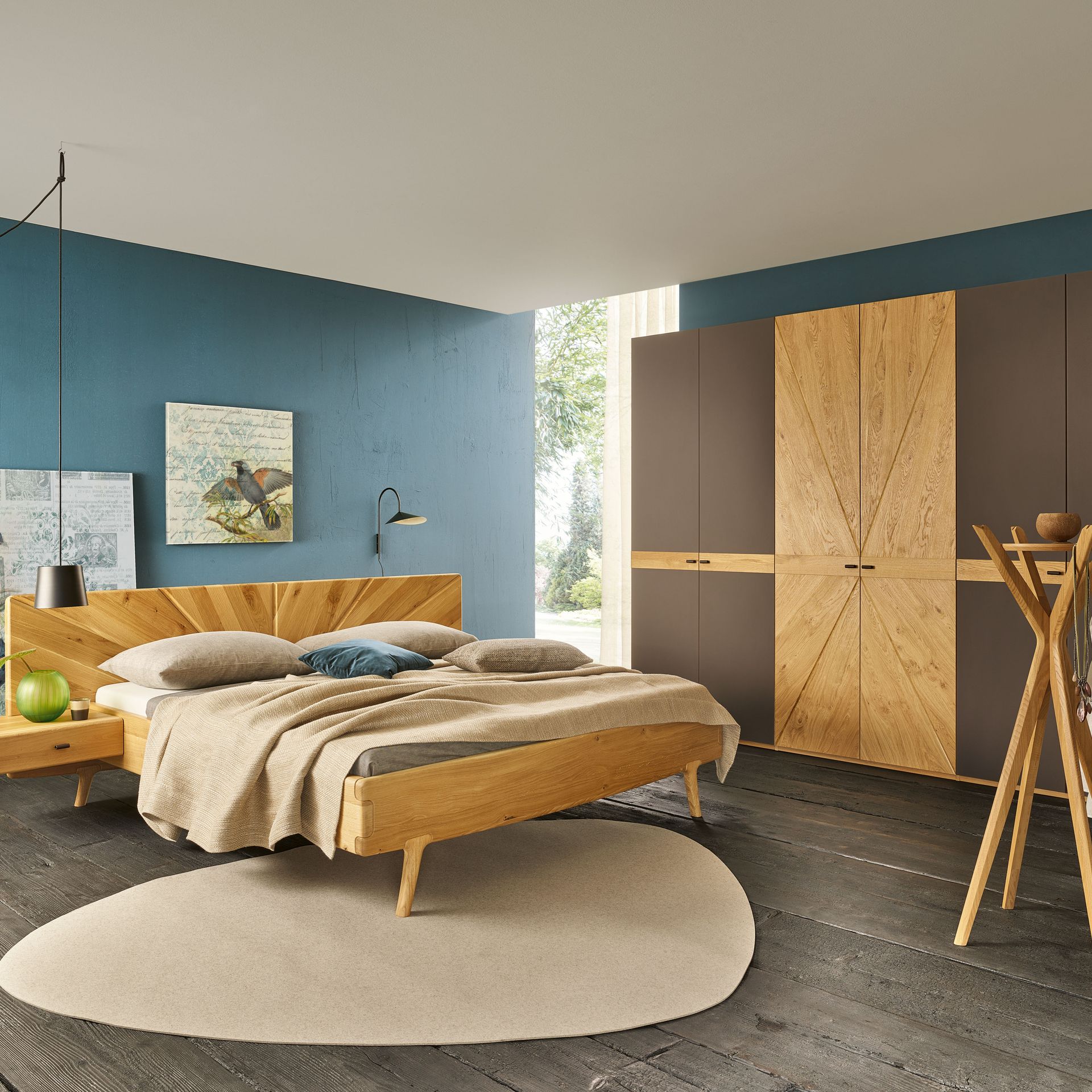 Quando la camera da letto invita alla pace, alla tranquillità e al silenzio come una passeggiata serale nel bosco, il rilassamento è assicurato. Con materiali naturali come la lana, luce calda, legno e colori positivi, l’oasi del riposo si trasforma in un paradiso. In particolare il legno di cirmolo favorisce il sonno e la rigenerazione. Grandi sorgenti luminose come finestre o lampade che illuminano dall’alto verso il basso, rendono caldo e intimo l’ambiente.